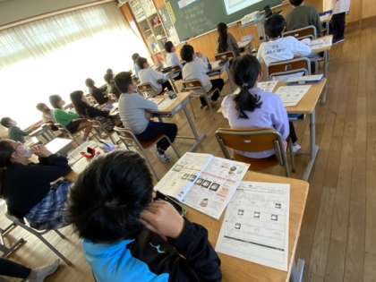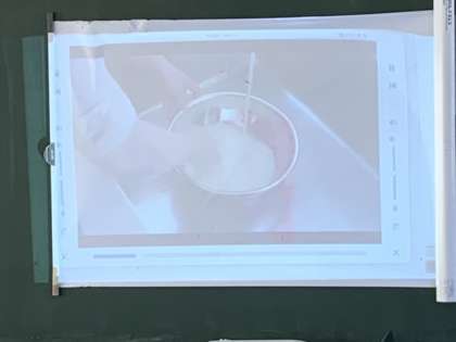 動画を見ながら確認していきました。実際に経験したことのある子供たちもいるようで、呟きがたくさん出てきました。実習への意欲が高まっています。