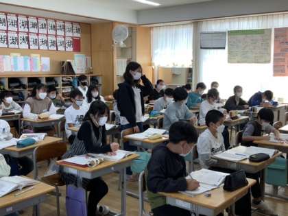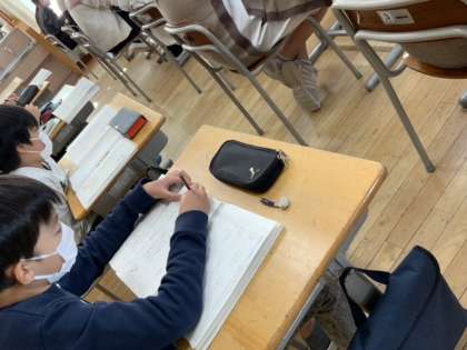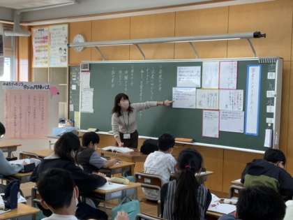 鳥獣戯画を教材として、筆者の工夫を考えました。グループごとにまとめたボードをもとに、シェアリングをしていきました。