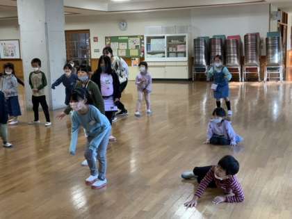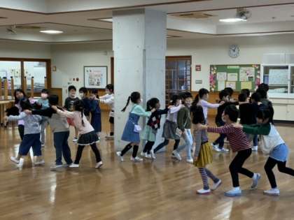 「だるまさんが転んだ」「じゃんけん列車」どちらも子供たちが大好きな遊びです。思い切り楽しみました。