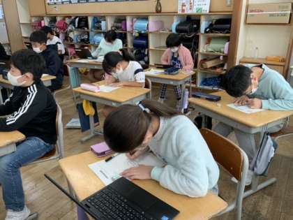 図画工作科ではコリントゲームの製作に取り組んでいます。今日は、自分の願いを整理するイメージマップをつくりました。「こんな作品にしたい」思いをしっかりともって取り組んでいきます。