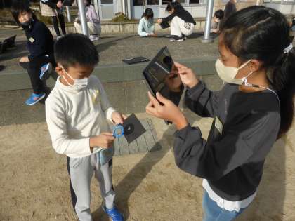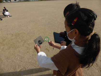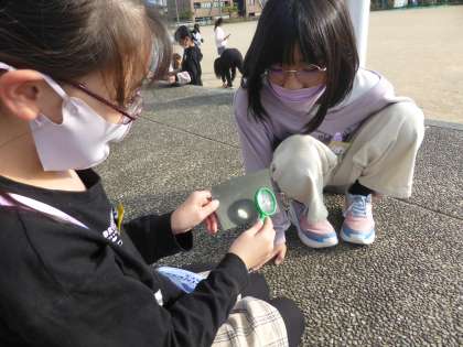 3年生 理科 虫めがねで日光を集めよう 公開日 2022/11/15 更新日 2022/11/15 3年 虫めがねで日光を集めることに挑戦しました。 丸い光が小さくなる方が、明るさが明るくなって、温かくなりそうなことを見付けました。しかし、雲に邪魔されて今日は実験が中断。「次回、もう一度やりたい」と子供たち。 次はすっきりと晴れるといいです。