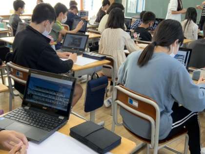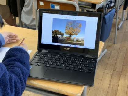 小学校の思い出の場所をドライポイントで版画として表します。今日はお気に入りの場所の写真を撮り、早速下絵に挑戦しました。
