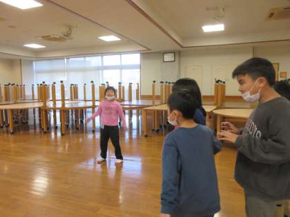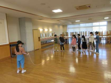 最近は、大縄の八の字跳びを頑張っています。怖がっている子にも、タイミングを教えてあげたり、跳ぶことができるとみんなで喜んでいます。