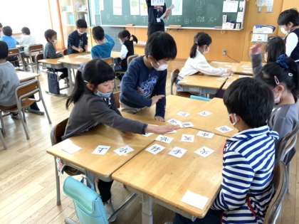漢字の中には実際の形が変化してできたものがたくさんあります。クイズ形式のカルタにして楽しく学習しました。子供たちの学びへの入り込みがすごいです。
