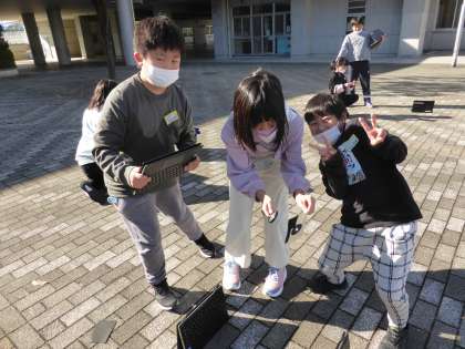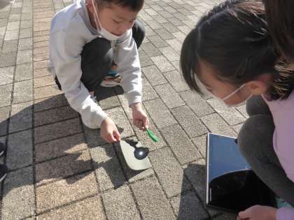 昨日の理科の学習では、太陽の光を虫眼鏡で集めてみようと、外に出ました。