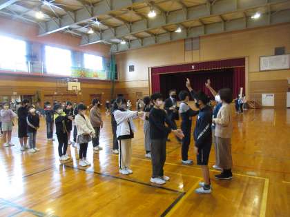 給食室から出火したという想定の下、子供たちは「お・は・し・も」の約束を守って避難することができました。