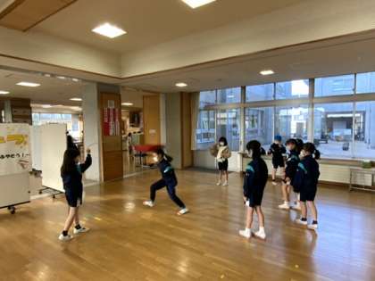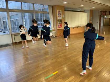 登校した子供たちは、早速体力つくりに励んでいます。中での運動として縄跳びを全校的に奨励しています。