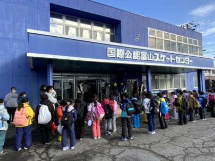 スケート場に到着です。たくさんの保護者の方々が協力してくださいます。さっそく子供たちをお迎えしてくださいました。お世話になります。