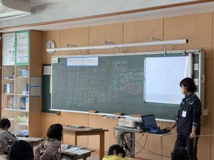 一つ前の答えに7を足せばよいこと、2と5の九九に分けても考えられること、かける数とかけられる数を入れ替えても答えは同じになることを見付けていきました。