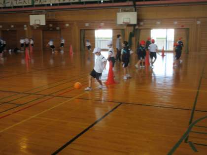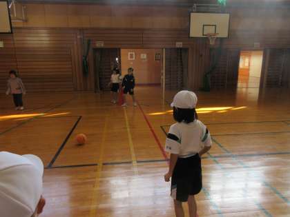 今日のキックベースは、いよいよ試合形式で行いました。どこにボールを蹴れば点数をとることができるのか、また、どのように守れば点数を防ぐことができるのか子供たちは考えながら体を動かしていました。