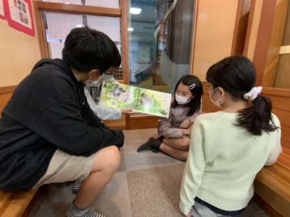 下級生への読み聞かせの練習をしています。しっかりと伝わるように、読む速さや強弱、抑揚等友達とアドバイスし合いながら、頑張りました。