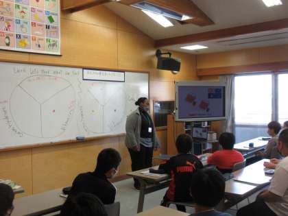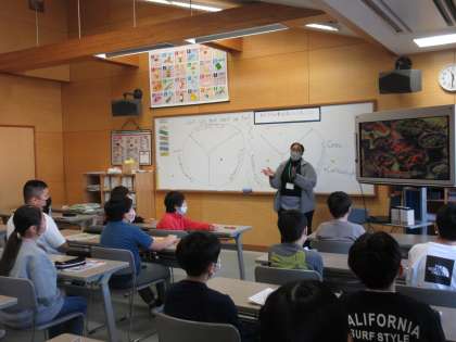 今日行う単元は「Let's think about our food.」食材を生産地や栄養素、値段等を入れて英語で紹介するという内容です。