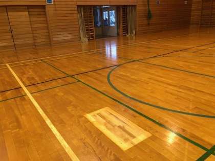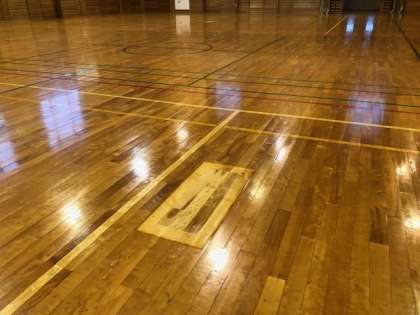 きしみが気になっていた体育館の床を修繕していただきました。当初の予定では、12月1日の日中いっぱいまでと聞いていましたが、作業が早く終わり、今日よりさっそく使用再開となっております。