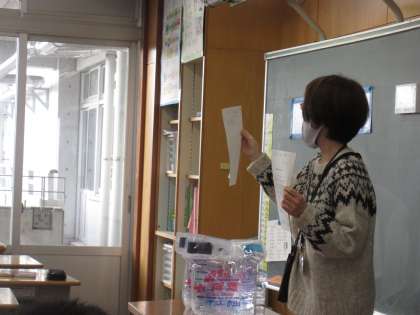 住んでいる地域の水道がストップするという体験をしたS先生が、5年生の子供たちのためにと、その時に配られた水を持ってきてくださいました。体験談を聞く子供たちの目は真剣そのもの。とてもよい時間になりました。