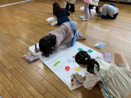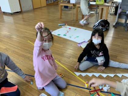 集会に向けて準備をしました。みんなと楽しもうとみんな頑張っています。見ていても子供たちのワクワク感が滲み出ていることを感じます。