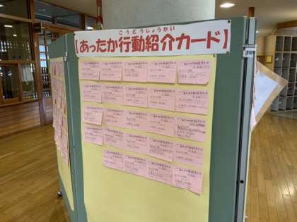 あったか言葉とあったか行動は豊かな人間関係をつくる上での根本です。学校生活の中で、してくれて・言ってくれてうれしかったことを子供たちが紹介し合っています。これをきっかけの一つとして、あったか〇〇がどんどん広がっていくことを願っています。