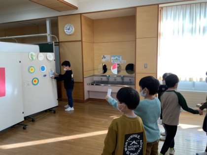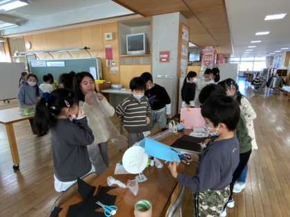 自分たちでつくり上げたおもちゃをぜひ一年生に遊んでもらいたい、そう願った2年生の子供たちは、1年生をご招待しました。2年生はお世話役を務め、1年生に思い切り遊んでもらいました。どちらの子供たちも笑顔でいっぱいでした。