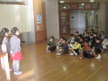 今日は1年生を招待し、生活科でつくったおもちゃで遊んでもらいました。1年生が楽しめるような遊び方や説明の仕方を工夫して準備してきました。