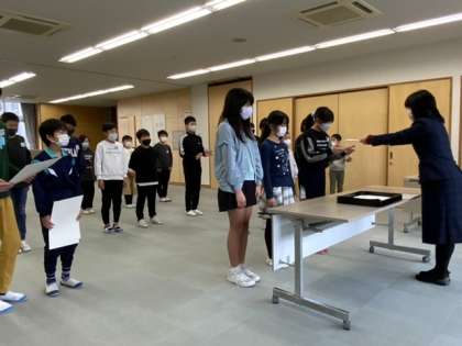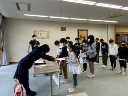テニス、絵画、書写、ユネスコパスポート他各分野で活躍した子供たちを紹介しました。どの子も堂々とした態度で式に臨んでいました。
