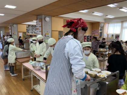 給食の時間は、「食べることの指導」と同時に「食べることの楽しさを実感する」時間としても大切にしています。