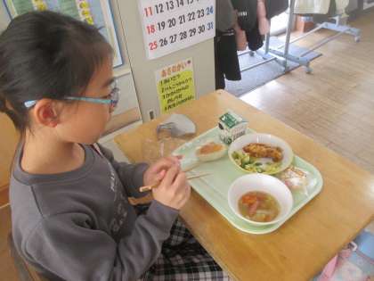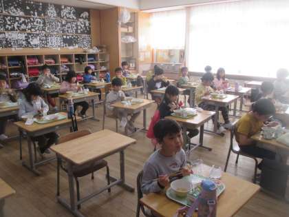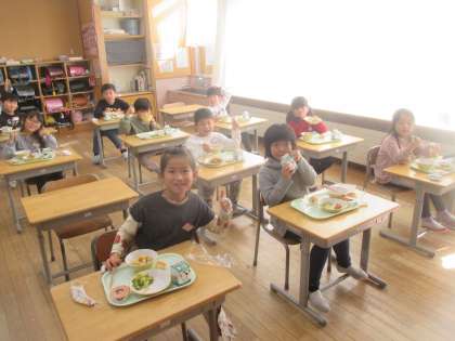 とっても嬉しそうな顔で給食を食べる子供たちでした。