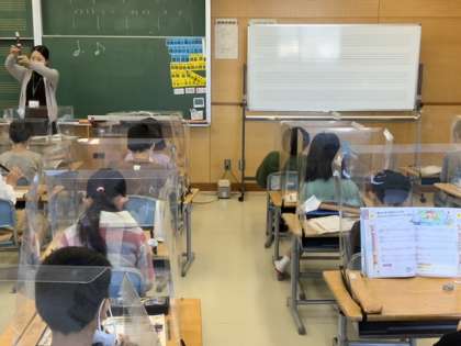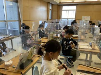 リコーダーで「パフ」に挑戦中です。高いレの音がなかなか難しいです。指の狙いを定めて正しく音が出せるよう頑張っています。