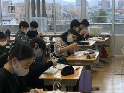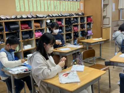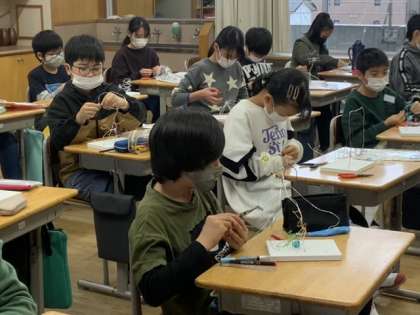 図画工作科では、ワイヤーアートに取り組んでいます。豊富な発想とペンチ等の道具の操作が出来上がり具合を左右します。子供たちは、じっくりと考えながら取り組んでいます。