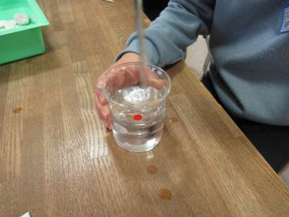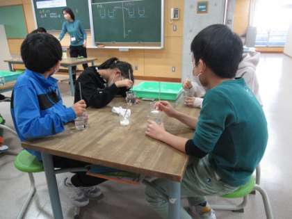 なぜ?おかしい?これが理科のスタートです。事象を見つめ、そこからの気付きを学習課題としていきます。よく混ぜたり、他いろいろ工夫している子供たちです。