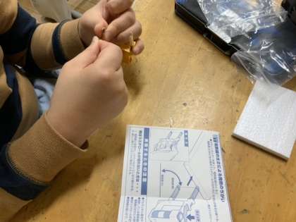 電気は熱を発生させる力を持っています。今日はスチレンカッターをつくりました。製作には若干の工夫が必要なようです。子供たちは互いに教え合いながら進めていました。