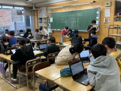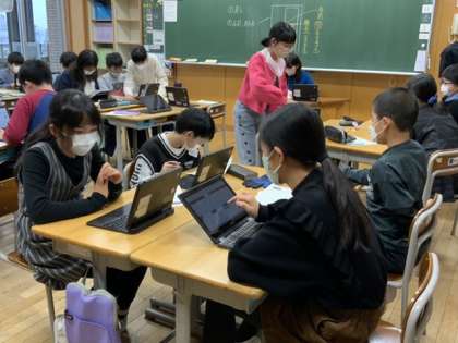 クロームブックを使って文集の作文の見直しをしました。入力することで、編集も容易にできます。気付いたことを会話しながら進めています。