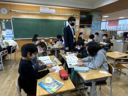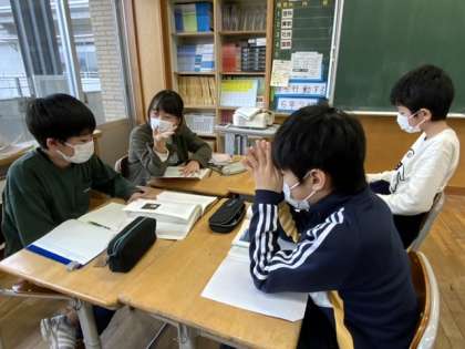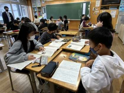やなせたかしさんの伝記を用いて学習しています。生涯において何度も大きな出来事に直面してきたそれぞれが、人生にどのような影響を与えたのかグループで意見交流をしました。
