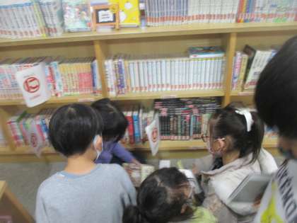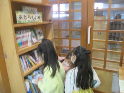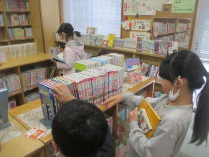 今週は、冬休みの本を借りに行く週間です。「冬休みは、少し長い本に挑戦しよう」「クリスマスや冬の本を借りよう」と読むことを楽しみにしながら、本を選ぶ子供たちでした。