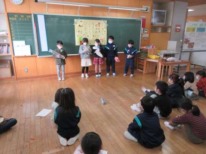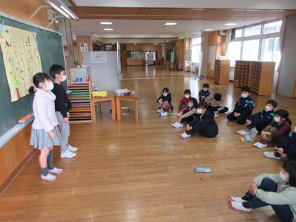1年生とおもちゃ遊びをするために準備をがんばる子供たちです。今日は実際に1年生がいることを想定して、予行練習を行いました。いよいよ明日が本番です。練習した成果が発揮できたらいいですね。