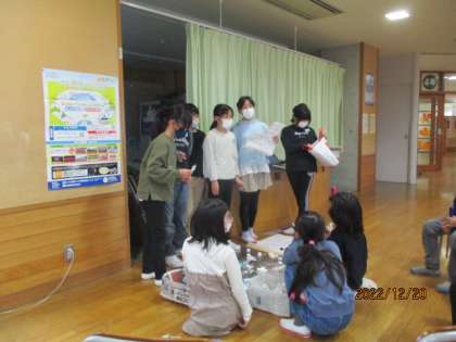 「総合的な学習の時間に学んだことや、考えたこと、体験して分かったこと等を下学年に伝えたい・広めたい」という思いで、2年生と3年生に伝える活動をしました。