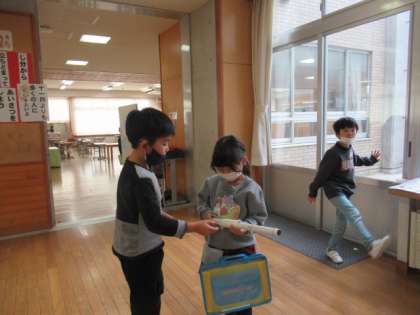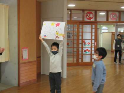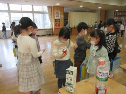 1年生となかよく交流しました。遊び方を丁寧に説明し、よい結果が出れば一緒に喜び合える温かなムードに包まれています。