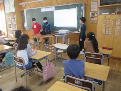 昨日は、4年生が総合的な学習の時間に行った活動や分かったことを発表しにきてくれました。クイズや劇を交えながら環境問題について伝えている4年生を見て、自分たちの総合の学習にも生かしていこうと考えていました。