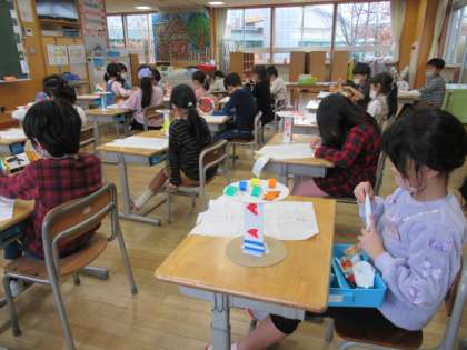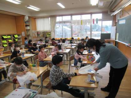 つくった作品を持ち帰ります。途中で壊れてしまうことがないように、丁寧にその準備をしました。
