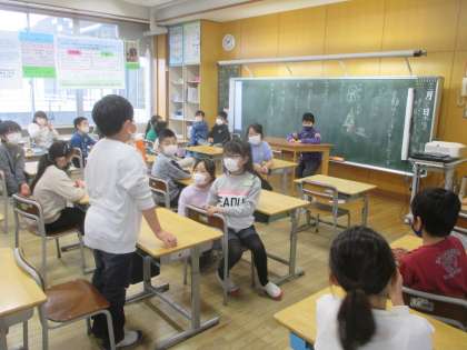 お楽しみ会の最後には、インタビューをしました。「合奏が上手ですごいと思った」「みんなで楽しめて仲が深まったと思う」などと、感想を言い合いました。