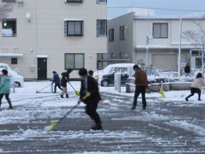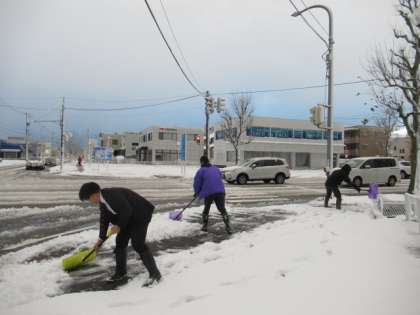 子供たちの登校が始まる前に、職員で除雪作業を行いました。午前6時過ぎから既に作業を始めていた者がいます。アクセスが悪くなっている中、1時間ほどかけて学校に向かってきた者もいます。