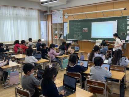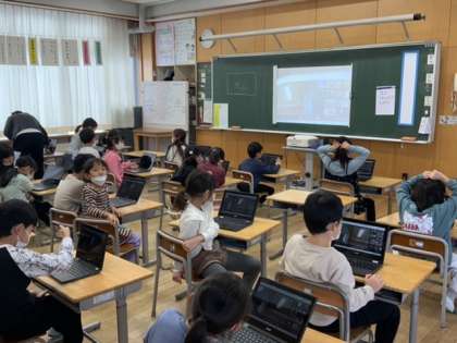 クロームブックで担任の先生とつながる練習をしました。指示通りに進めると、ほうら。今の時代を生きる1年生、さすがです。