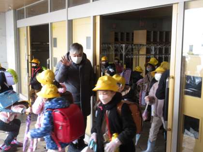 2学期が無事に終わり、先生や友達に元気よく挨拶をして帰って行く子供たち。「よいお年を!」「3学期、またね!」みんなとてもよい笑顔です。