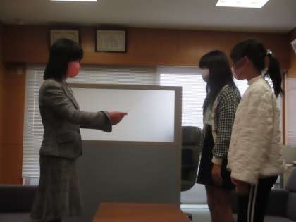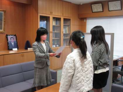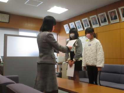 「美の祭典 越中アートフェスタ2022」の平面部門で入選した2人に校長先生から賞状が手渡されました。おめでとうございます!