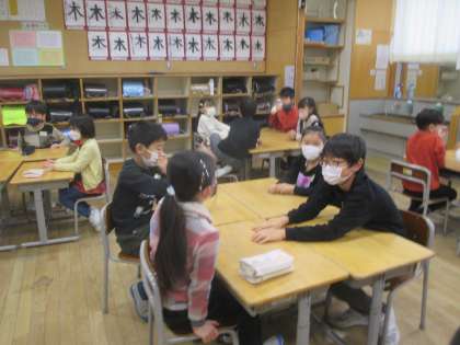 2学期にがんばったことや楽しかったこと等、思い出を語り合いました。友達のがんばりを認め合う姿が見られました。