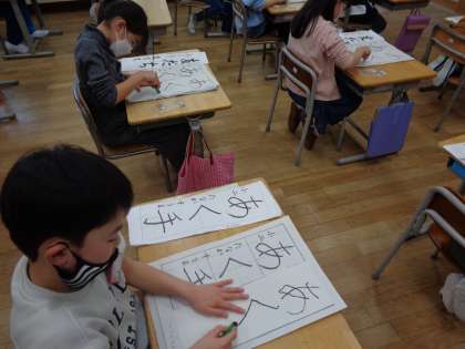 冬休みにたくさん練習してきた成果を発揮しようと、朝から意気込む子供たちでした。本番は、一文字一文字に魂を込めて書いていました。
