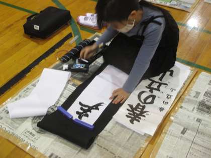 書き初め大会を行いました。一人一人が字と向き合い、真剣に書き初めに挑むことができました。冬休みの成果を出し切ろうと、どの子供も頑張ることができました。