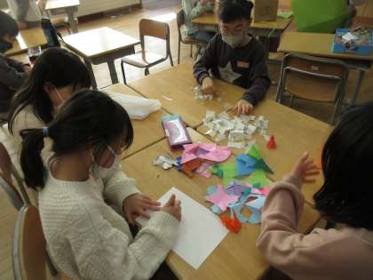 それぞれの係に分かれて、楽しそうに活動している子供たち。3学期も、自分たちの手でよりよい学級づくりを進めていってほしいものです。