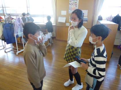 「3、4年生は、挨拶が元気でいいですよ」と声を掛けられ、嬉しそうな3年生でした。取材されたことは、いつ放送されるかな?と楽しみにしていました。