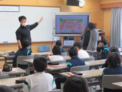 いろいろな教室の言い方や案内の仕方について学習しました。外国語活動では、心を開いて思い切り英語と慣れ親しむことをねらいます。子供たちのお楽しみの時間の一つです。