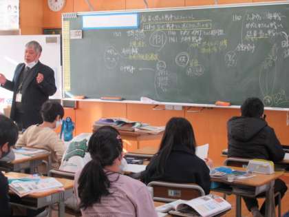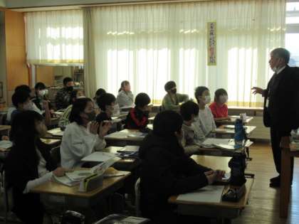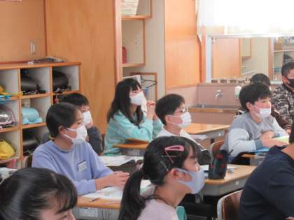 日本が戦争へと進んでいった背景は何だったのか。悲しい過去を振り返りながら、平和の尊さについて学びました。専科の先生の言葉一つ一つに重さがあり、子供たちの目は、そんな先生とつながったままでした。