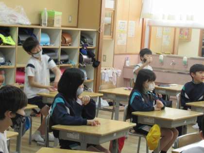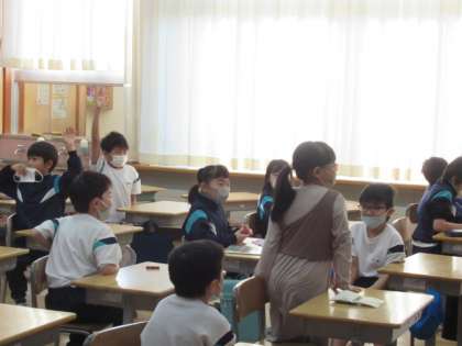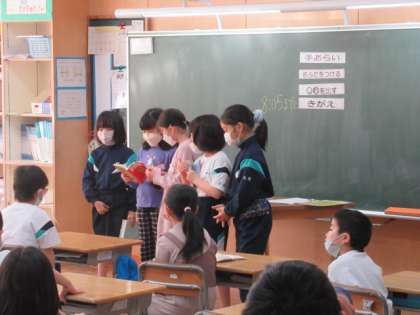 朝を楽しい気分でスタートさせるために、係の子供たちがクイズを出してくれています。思考することで、頭の体操にもなりますね。